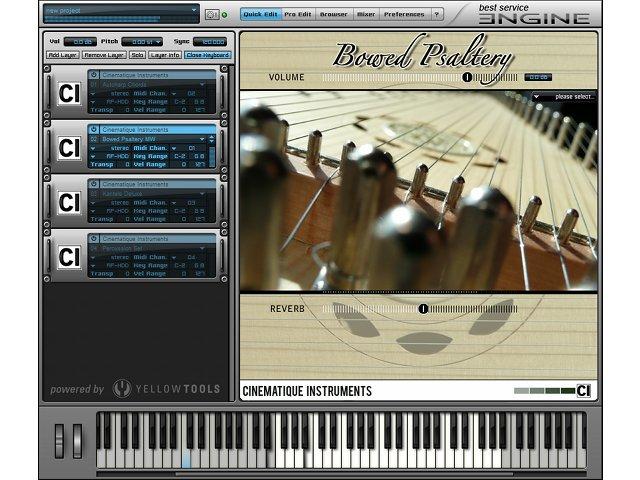 Eine 36-saitige Zither mit einer Reihe von Akkordknöpfen namens Autoharp, ein Streichpsalter, eine Gewittertrommel, eine Kantele und eine keltische Nylon-Harfe sind nur einige der ausgefallenen Instrumente, die für die Sample-Bibliothek Cinematique Instruments konserviert wurden. Neben seltenen akustischen Instrumenten umfasst die knapp 2 GB große Sammlung auch eine kleine Auswahl an Multisamples ungewöhnlicher und seltsamer Tasteninstrumente wie der Magnus-Harmonica-Orgel, des Billigkeyboards Super-Sound EK-470 E-Piano und des Standklaviers Zeitter & Winkelmann.