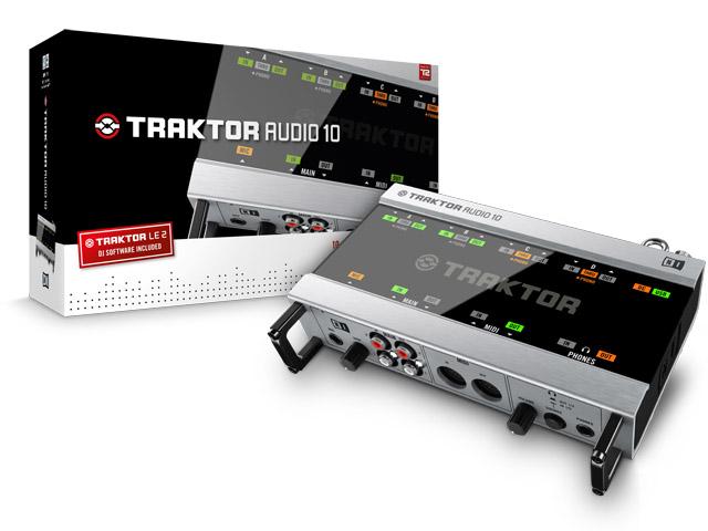Mit dem Traktor Audio 10 stellt Native Instruments den Nachfolger des von vielen Traktor-Anwendern eingesetzten Audiointerface Audio 8 DJ vor. Das neue Audiointerface kann als Bestandteil des größten Traktor-Pakets Traktor Scratch Pro 2 oder einzeln erworben werden. Es ist mit fünf Stereo-Eingängen versehen, die sich aus vier kombinierten Line-/Phono-Eingängen und einem reinen Line-Eingang zusammensetzen. Ausgangsseitig stehen fünf Stereo-Anschlusspaare in Cinch-Ausführung parat. Zum Vorhören von Ein- und Ausgangssignalen gibt es einen regelbaren Kopfhörerausgang als Studio-Klinke. Ein Mikrofon lässt sich ebenfalls an das Gerät anschließen. Zum Datenaustausch mit MIDI-Geräten oder zur Synchronisation via MIDI-Clock ist das Traktor Audio 10 mit einem MIDI-Ein- und -Ausgang ausgestattet. Mithilfe von 25(!) Status-LEDs wird der Anwender über ein- und ausgehende Signale und aktive Kommunikationsverbindungen informiert.