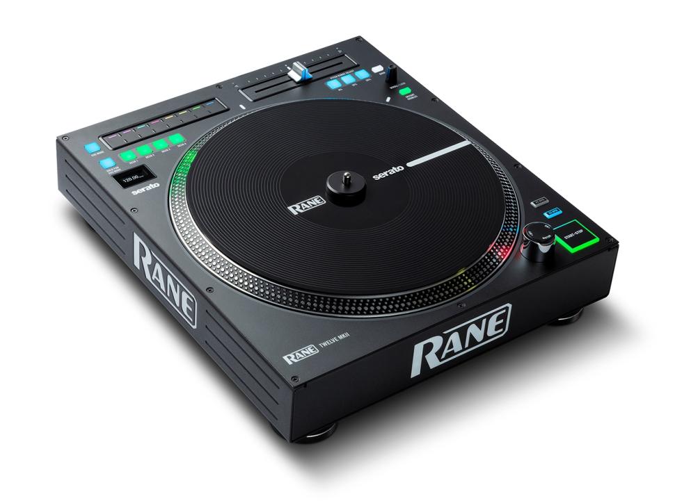 Äußerst stabil verbaut präsentiert sich der knapp zehn Kilo schwere Vinyl-Controller Twelve MKII nebst aufsetzbarem 12-Zoll-Platter. Verglichen mit dem Vorgänger, kann er über die Cinchbuchsen ein Timecode-Tragersignal für passende DVS-Software ausgeben oder via USB als MIDI-Controller für Serato DJ Pro im Club rocken. Dabei wurde an eine Steuerung mit Traktor und Virtual DJ gedacht. Mit im Paket ist die schön grifffeste 12“-Steuerungs-Vinylplatte aus Acryl. Die tief nach unten drückbare Start- und Stop-Taste weckt viele nostalgische Gefühle, wie bei früheren Plattenspielern. Komfortabel ist auch das Anspielen der acht Hot Cues gelöst, wie auch der Wechsel zwischen vier verschiedenen virtuellen Decks. Als nützliche Hilfe erweist sich auch der Scroll-/Loadegler, um zügig durch Playlisten navigieren zu können. Unterhalb des Turntables kann der Drehmoment per Torque-Schalter (Hi/Low) eingestellt werden.