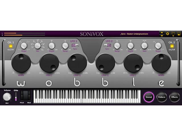 Die klar strukturierte Bedienoberfläche mit großzügig dimensionierten Reglern bietet den Zugriff auf Parameter wie den Obertongehalt sowie die Filterfrequenzen und -resonanzen der beiden Synthesizer-Kanäle. Mithilfe von zwei LFOs können diese und weitere Parameter eindrucksvoll moduliert werden. Das Highlight des Synthesizers ist sein Modulationsgenerator, mit dem sich komplexe rhythmische Klangmanipulationen wie eine temposynchrone Automatisierung der LFO-Rate realisieren lassen. Nicht minder clever ist die „Intelligent Rhythm Control“, welche die gespielten Noten in Echtzeit quantisiert. Auf einer eigenen Bildschirmseite finden sich die Effekte Chorus, Tempo-Delay und Hall. Für einen Synthesizer, der sich eine einfache Bedienbarkeit auf die Fahnen schreibt, leistet sich Wobble von der unkomfortablen Preset-Verwaltung bis hin zur hakeligen Handhabung allerdings einige unnötige Schwächen in Sachen Ergonomie.