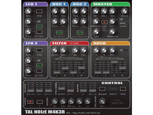 Mit TAL-NoiseMaker hat Togu Audio Line sein bisheriges Meisterwerk vorgelegt, das durch einen kraftvollen, fetten Klang und seine einsteigerfreundliche und intuitive Bedienoberfläche begeistert. Wie die 128 Presets eindrucksvoll belegen, sind analoge Standards eine leichte Übung für den flexiblen Krachmacher, wobei besonders bissige Sounds beeindrucken.