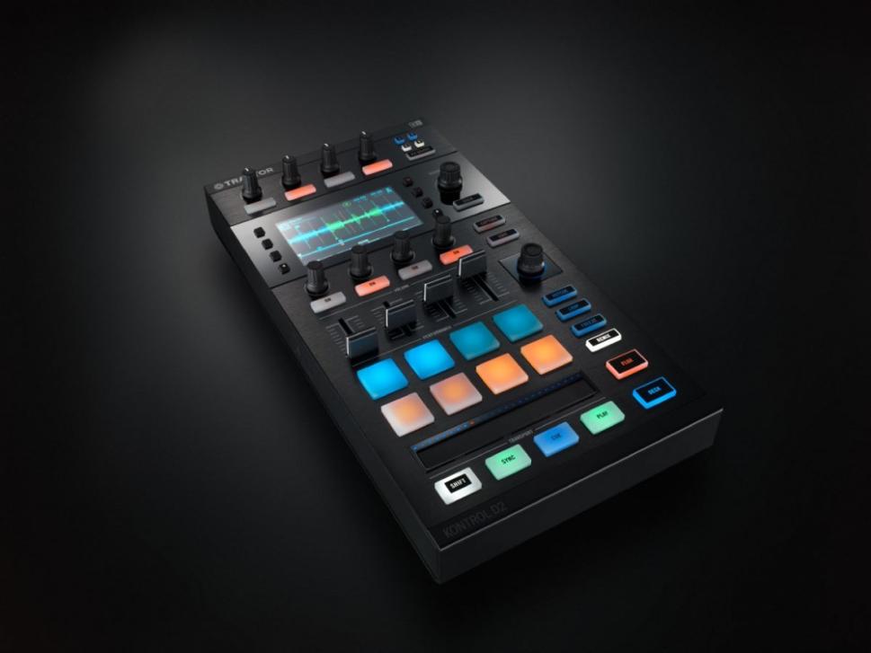 Der Kontrol D2 von Native Instruments ist ein Spezial-Controller für Traktor Pro. Er bietet gummierte Tasten für Transportsteuerungen und einen Touchstrip. Acht beleuchtete Pads sind zur Ausführung kreativer Funktionen vorgesehen. In der Mitte des Controllers gibt es berührungsempfindliche Fader und Potis, die zur Kontrolle verschiedener Deck-Arten in Traktor gedacht sind. Ein Farbdisplay versorgt Sie mit funktionsbezogenen Informationen und visualisiert Wellenformen, Effektparameter und Playlisten. Der Kontrol D2 ist auf der Rückseite mit einem USB-Anschluss ausgestattet, der den Datenaustausch mit einem Computer übernimmt und mit einem zweifachen USB-Hub für die Setup-Erweiterung. Das Gerät wird mit einer Traktor-Pro-2-Lizenz ausgeliefert und ist ab Werk komplett vorkonfiguriert. Die Navigation in der Songbibliothek, die Basissteuerungen, aber auch der Einsatz von Loops- und Cue-Punkten gelingen nach einer Einarbeitungszeit ohne Blick auf den Computermonitor. Da es kein Jog-Rad gibt, lässt sich ein flüssiger Mix am einfachsten mit der Sync-Funktion realisieren. Neben der Steuerung von Track-Decks, bietet der Controller einen umfassenden Zugriff auf die Remix- und Stem-Decks. Letztere sind für kreative DJ-Sets prädestiniert und lassen sich automatisch synchronisiert auch von Einsteigern nutzen.