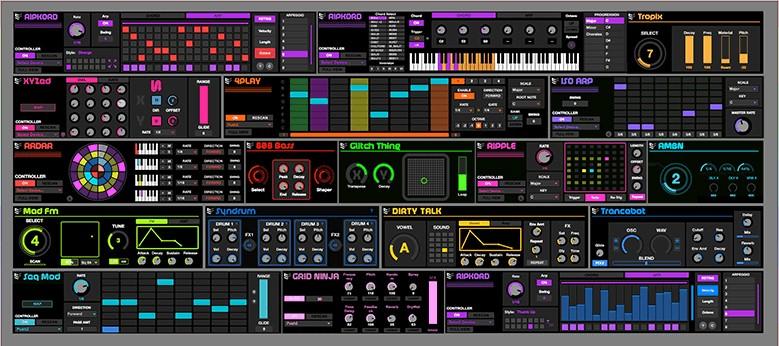 Den Kern der Sammlung bilden fünf eigenwillige Sequenzer-MIDI-Effekte. Beispielsweise bietet ''4Play'' mit vier simultanen Abspielpositionen (je eigene Geschwindigkeit und Laufrichtung) melodische Sequenzen während ''Radar'' mit kreisförmiger Anordnung eher für die Rhythmen sorgt. Zudem kombiniert der ''Ripkord'' einen Akkordgenerator mit einem Arpeggiator, um harmonische Akkordfolgen und musikalische Sequenzen zu kreieren. Weitere Gadgets stellen drei Audio-Effekte dar, die mit Ableton-Parametern frei gemappt (Macros) und in Echtzeit beeinflusst werden. Ferner besteht die mitgelieferte Klangpalette aus acht unterschiedlichen Instrumenten, die von 808-Bass-Sounds über grobkörnige Vocals und Glitch-Sounds bis hin zu Trance-Leads reichen.